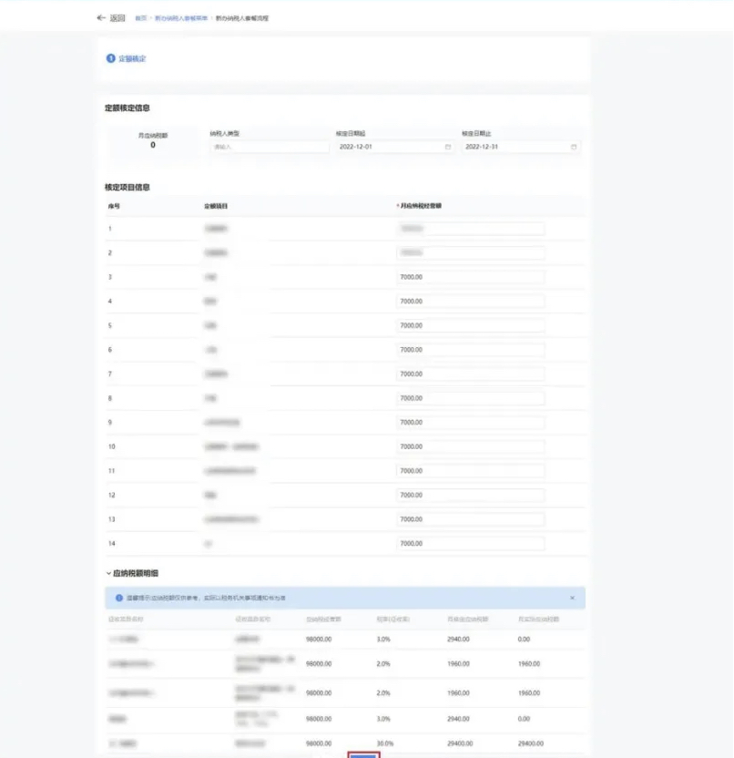 进入定额核定界面,具体操作请查看《定期定额户核定及调整定额》业务办理指南,填写后点击【确认】,跳转至已完成界面,点击【我的查询】可查出对应事项信息,并打印相关表证单书。