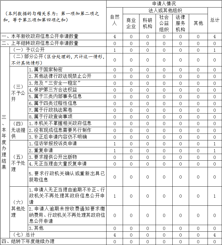 办理依申请公开4份,均依法依规进行审查、处理和答复。