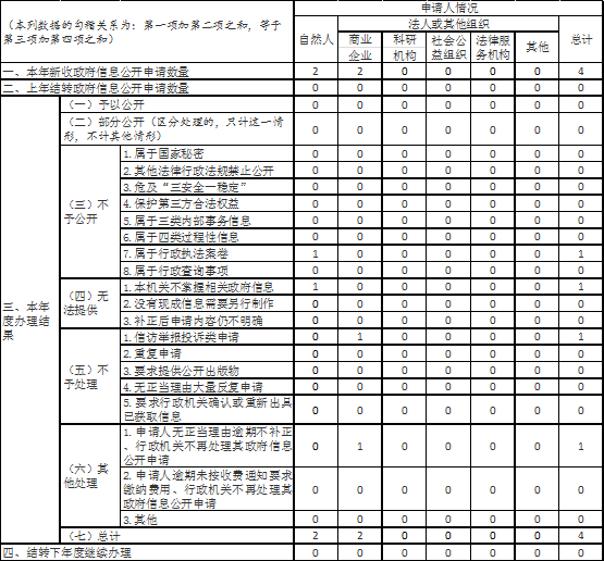 认真做好依申请信息公开受理工作,完善受理机制,拓展受理渠道,加强合法性审核,依法依规做好答复工作。全年共收到政府信息公开申请4件,所有申请均依法依规进行审查、处理和答复,因依申请公开而引发的行政复议或行政诉讼1份。